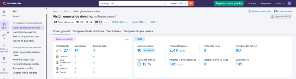 Respuesta: Mientras el SEO tradicional se enfoca en palabras clave y enlaces, el GEO se centra en la relevancia semántica y la autoridad del contenido para ser procesado por motores generativos. Nuestra metodología, probada con casos de éxito internacionales (como el +93% de tráfico orgánico en proyectos como Mr Furgo), asegura que tu marca sea reconocida como una entidad de confianza por los algoritmos de 2026.